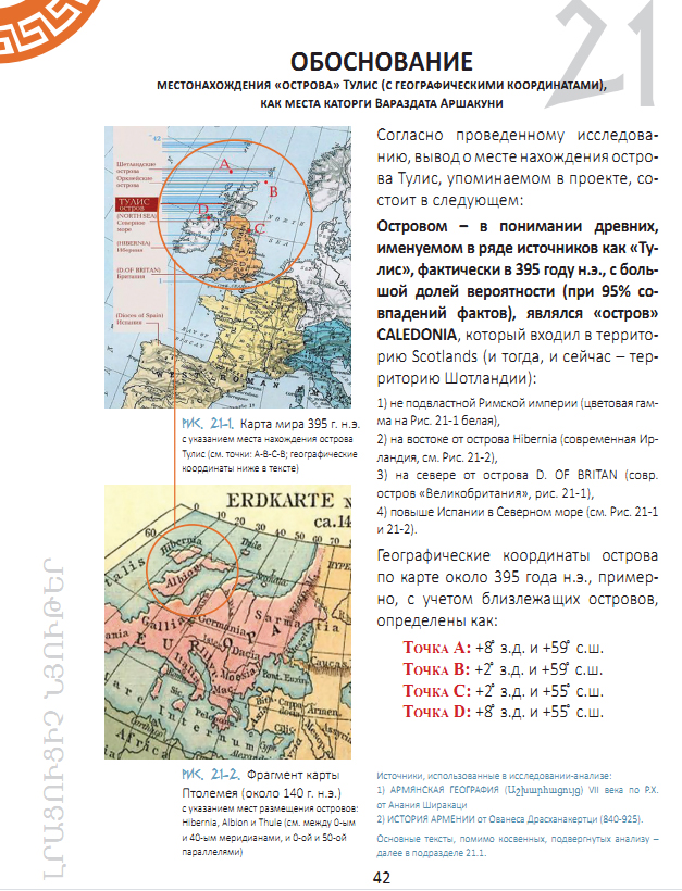 Внимательный анализ карт и текстов показал 95% совпадений, указывающих на то, что «остров Тулис», это «остров Caledonia», который входил в территорию Scotlands (и тогда, и сейчас – территорию Шотландии).